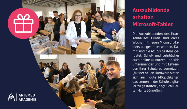 Die Dürener Azubis befinden sich damit in bester Gesellschaft. Nach Übernahme des ehemals kommunalen Krankenhauses durch die Artemed SE profitieren auch die Auszubildenden des Krankenhauses von dieser wegeweisenden Modernisierungskampagne in der Pflegeausbildung: Schritt für Schritt werden alle der bundesweit über 500 Artemed-Auszubildenden der Pflege- und Funktionsberufe mit Tablets ausgestattet, die sie auch privat nutzen dürfen.