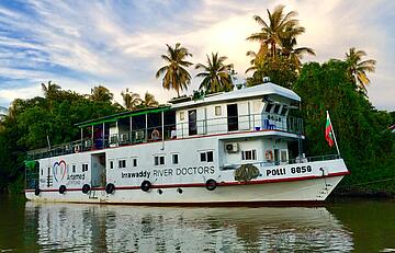 Die Irrawaddy River Doctors sind mit ihrer schwimmenden Hausarztpraxis auf dem Irrawaddy Fluss im Süden Myanmars im Einsatz. Dank der burmesischen Ärzte, Ärztinnen und den Pflegekräften an Bord, kann medizinische Versorgung in die entlegenen Dörfer des Flussdeltas gebracht werden. 16 Dörfer im Irrawaddy Delta liegen auf der Route der Irrawaddy River Doctors.